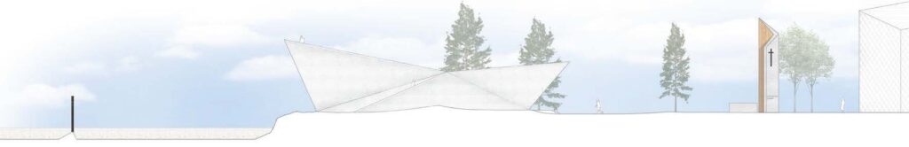 Suunnitelma seuraa rakennuspaikan näkymiä Suomenlinnaan, Helsingin keskustaan ja kantakaupunkiin. Kappelisalin näkymälinja suuntaa kohti Tuomiokirkkoa ja rakennuksen katolla sijaitsevalta näköalatasanteelta näkymät avautuvat Kruunuvuorenselälle. Kappelisalin merinäkymän keskelle sijoittuu merestä kohoava risti kuvastamaan uskoa, joka kumpuaa ihmiskunnasta. Navis tarjoaa paikan hiljentymiseen ja rauhoittumiseen meren äärellä. Näköalatasanteella aktivoituvat kaikki aistit, kun vesipisarat pirskoutuvat iholle, raikas meri-ilma tuoksuu, aallot leikkivät verkkokalvoilla ja meren kuohuminen soi korvissa.