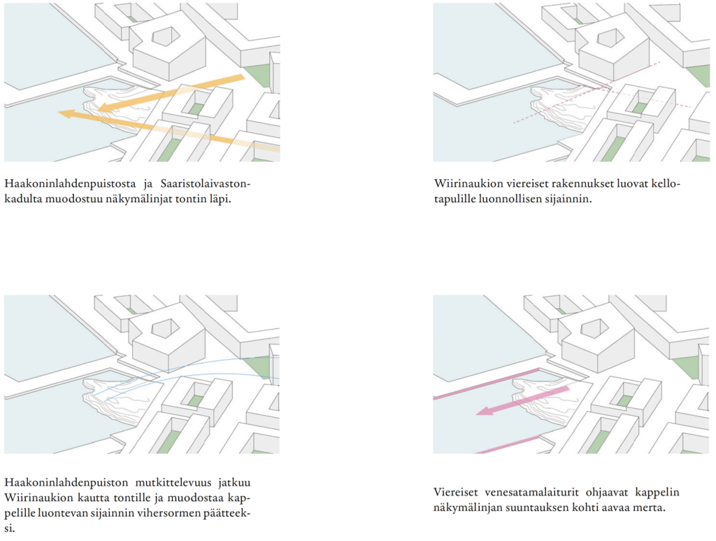 Navis sijoittuu osaksi Helsingin merkittävää merellistä julkisivua. Kruunuvuorenranta on nimetty valon kaupunginosaksi, joten kun päivisin kappelista katsellaan kohti merta ja keskustaa, toisaalta hämärän aikaan kappelin valaistus tekee rakennuksesta lyhtymäisen valotaideteoksen horisonttiin.